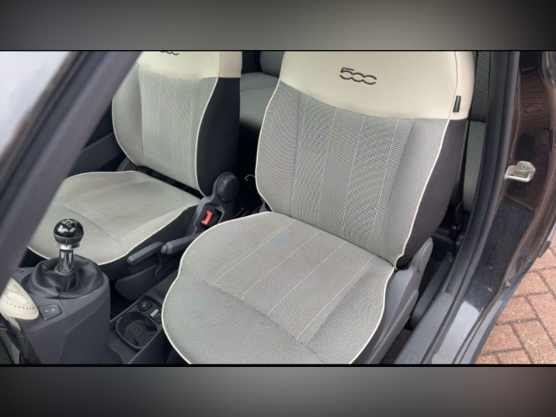 Fiat 500 Lounge 1.2. In bright met Black paintwork with contrasting charcoal interior, Only 3 previous owner car with good service history, also just serviced by us.